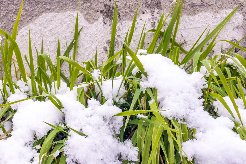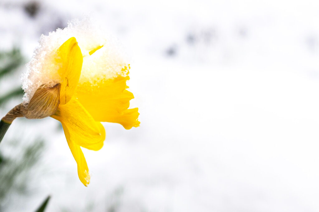 snow and a daffodil