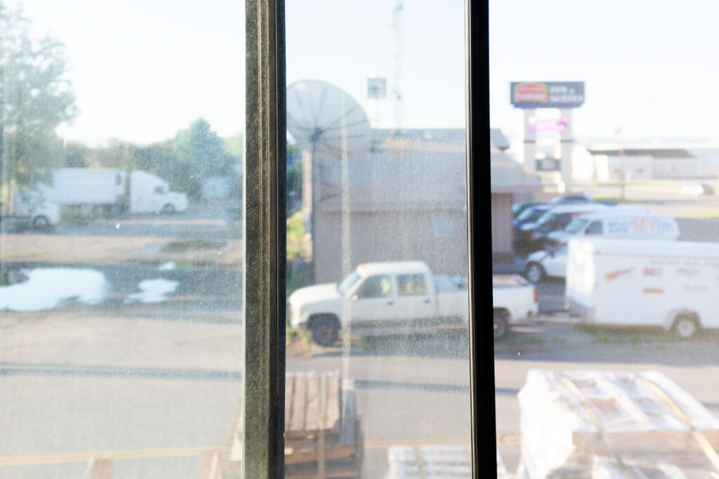 The dusty hotel window…