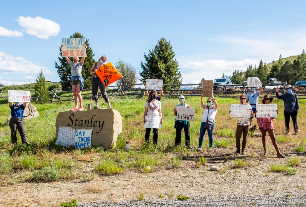 Arriving in Salmon the streets are empty. It is after dinner and the summer sun is shining late on the longest day of the year. I stop and ask directions to the Stagecoach Inn. Two patrons keeping their physical distance banter back and forth until they are sure of its location. I am grateful for their kindness and find the hotel easily. I inquire about a riverside room and am awarded one because it is a slow night. Another reason to be grateful! I unpack some food and sit on the balcony over looking the grassy shore and the Salmon River. A man wearing a protective mask walks his dog to river’s edge and for a moment they both stand in the rushing river’s silence.
