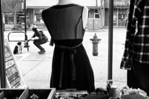 Black and white photography of city life in Moscow Idaho, 2016.